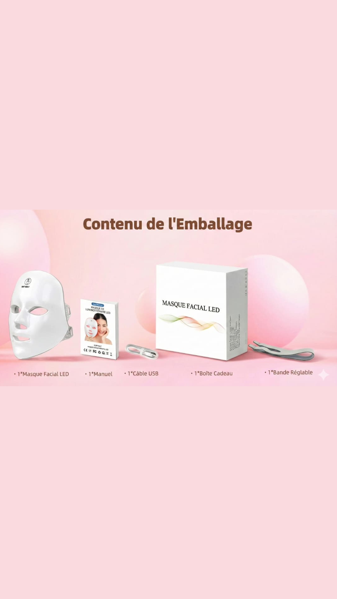 Le LuxeDerma™ Soin LED Visage est un masque de luminothérapie nouvelle génération conçu pour sublimer la peau, lutter contre les imperfections et ralentir visiblement les signes de l’âge. Inspiré des technologies utilisées en instituts esthétiques, il combine innovation, confort et efficacité pour un soin complet à domicile.
